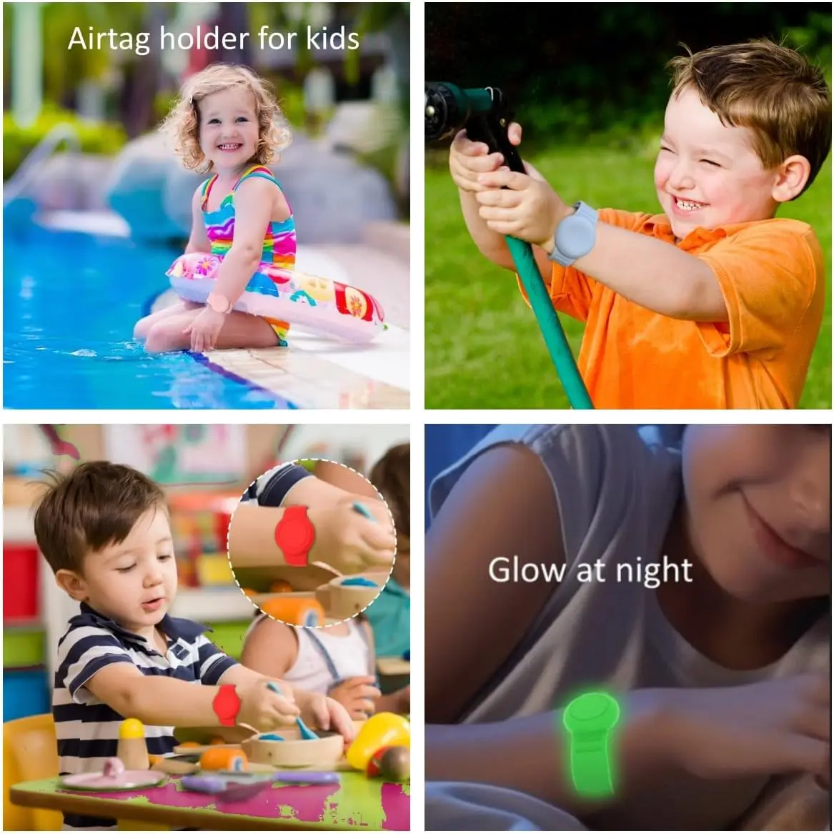 ?IPX8 Waterproof Design?Our airtag bracelet case are specially equiped with IPX8 waterproof plug.Use it with confidence whether you're swimming or going to the beach!This will allow your child to wear it all the time without worrying about losing it or getting it wet.